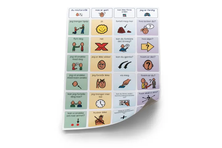 - Rask prat-vokabularet leveres som klistrelapp som kan festes der det trengs